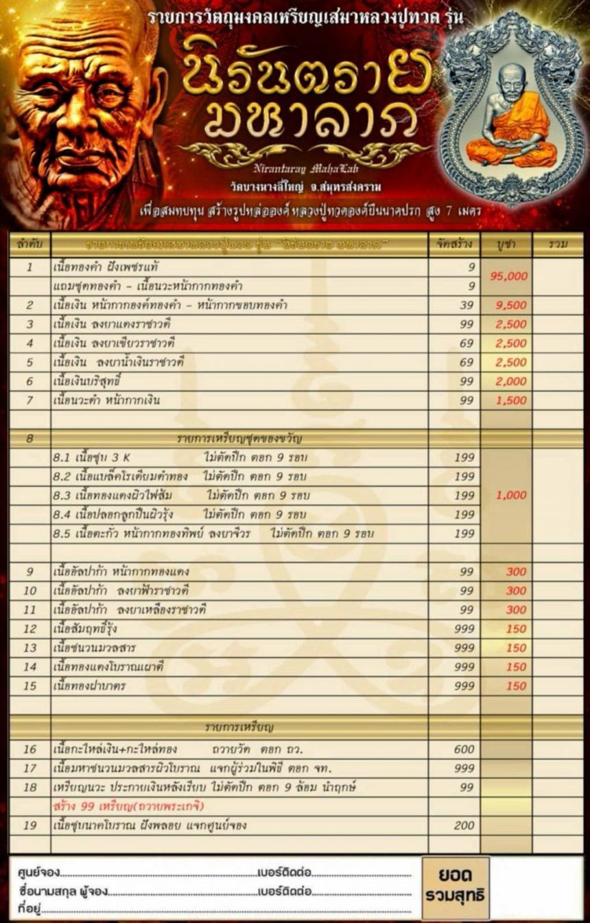 เพื่อนำรายได้สมทบทุนเททองหล่อหลวงปู่ทวดองค์ยืนสูง 7 เมตร ประดิษฐานที่วัดบางนางลี่ใหญ่ อ.อัมพวา จ.สมุทรสงคราม