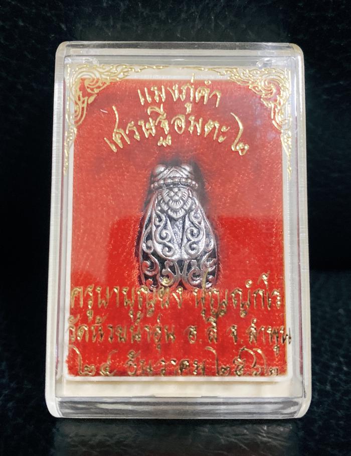 ทนกระแสความศรัทธาของรุ่นแรกไม่ไหวแมงภู่คำ เศรษฐีอมตะรุ่น2 รูปแบบสวย งานละเอียด หล่อจิวเวลรี่เกรด เนื้อเงินบริสุทธิ์ ประกอบ 3ชิ้น และเนื้อบรอนซ์ ฉลุลายซึ่งเป็นเอกลักษณ์ของแมงภู่คำ รุ่นเศรษฐีอมตะ