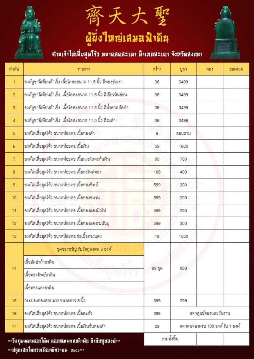 เปิดจอง 齊天大聖 “ผู้ยิ่งใหญ่เสมอฟ้าดิน” รุ่นแรก ศาลเจ้าไต่เสี่ยฮุดโจ้ว ตลาดสดสะเดา อำเภอสะเดา จังหวัดสงขลา เปิดจองครับ
