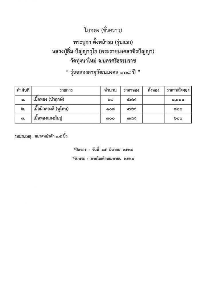 👉 รุ่นฉลองอายุวัฒนมงคล ๑๐๘ ปี